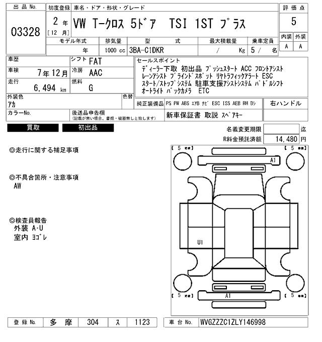 VOLKSWAGEN T-CROSS - лот 3328