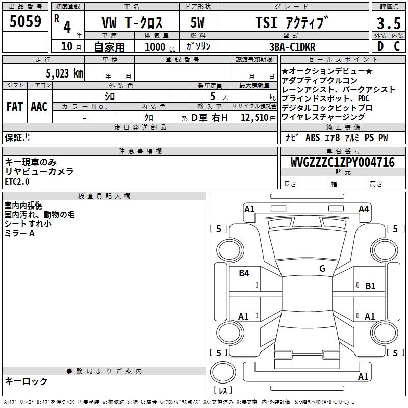 VOLKSWAGEN T-CROSS TSI ACTIVE - лот 5059