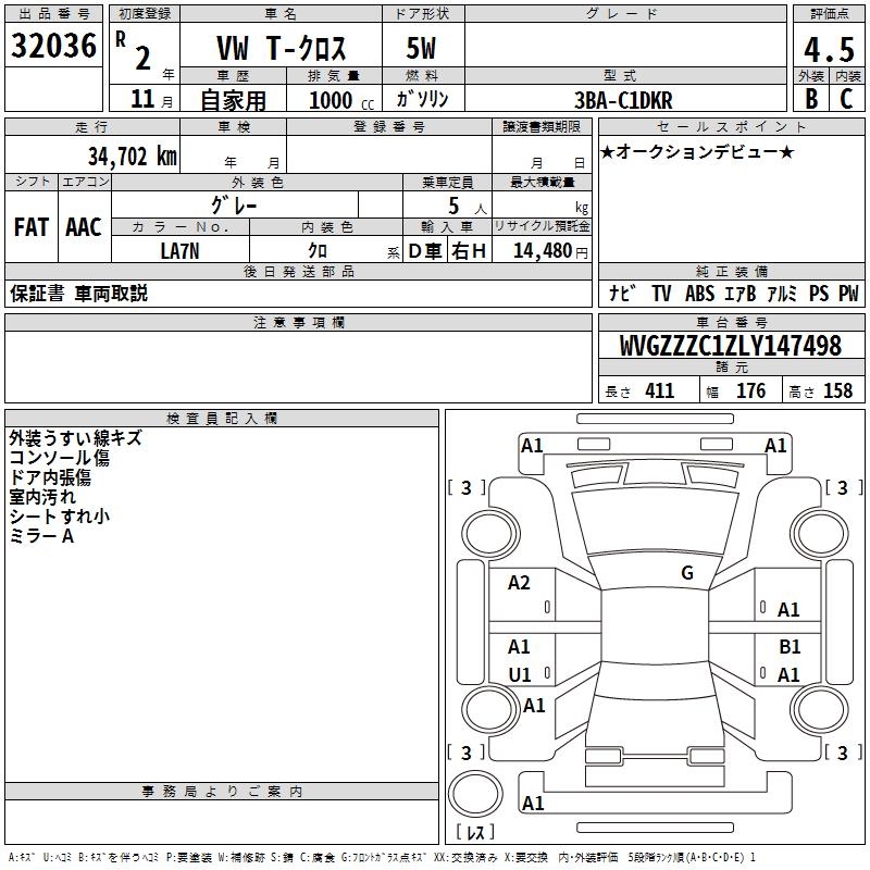 VOLKSWAGEN T-CROSS - лот 32036