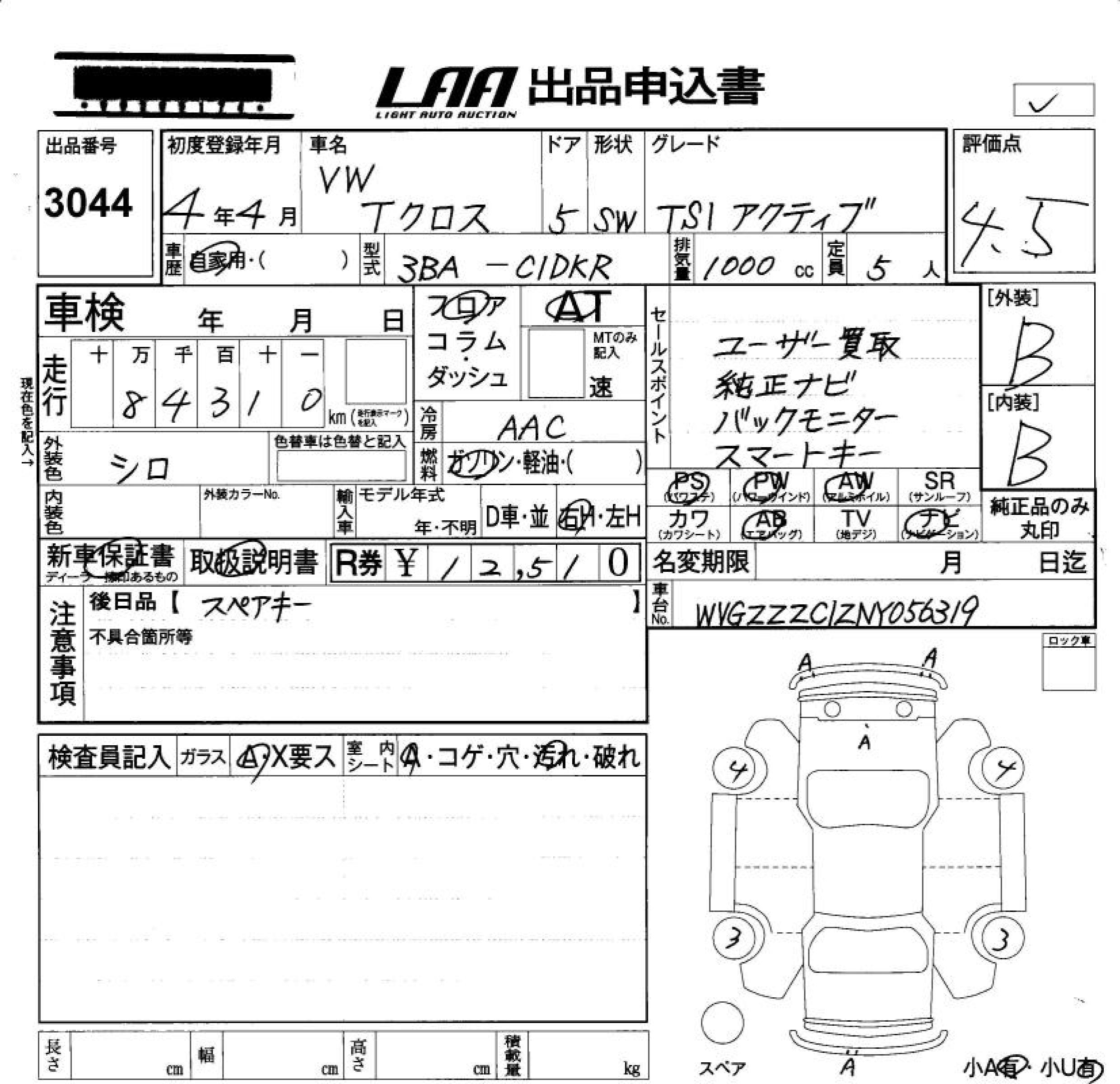 VOLKSWAGEN T-CROSS TSI ACTIVE - лот 3044