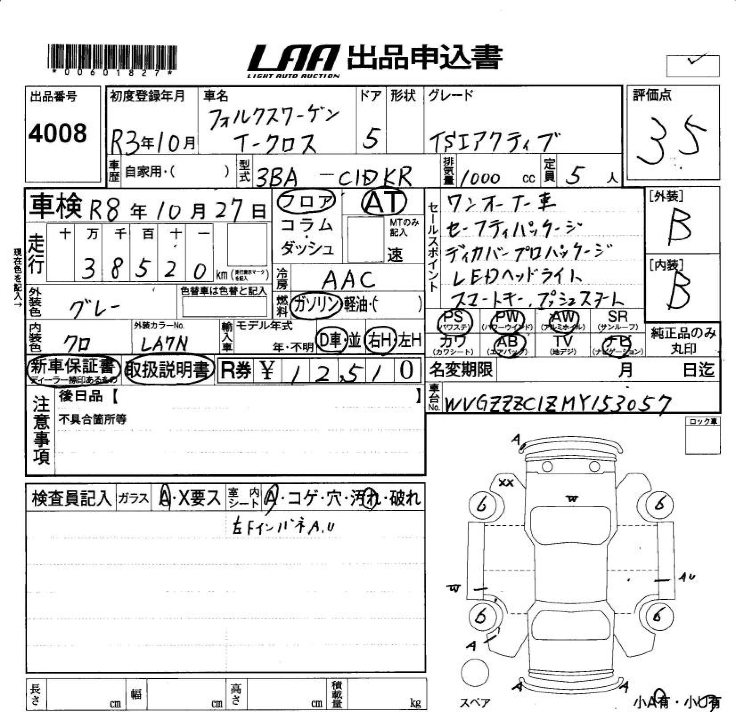 VOLKSWAGEN T-CROSS TSI ACTIVE - лот 4008