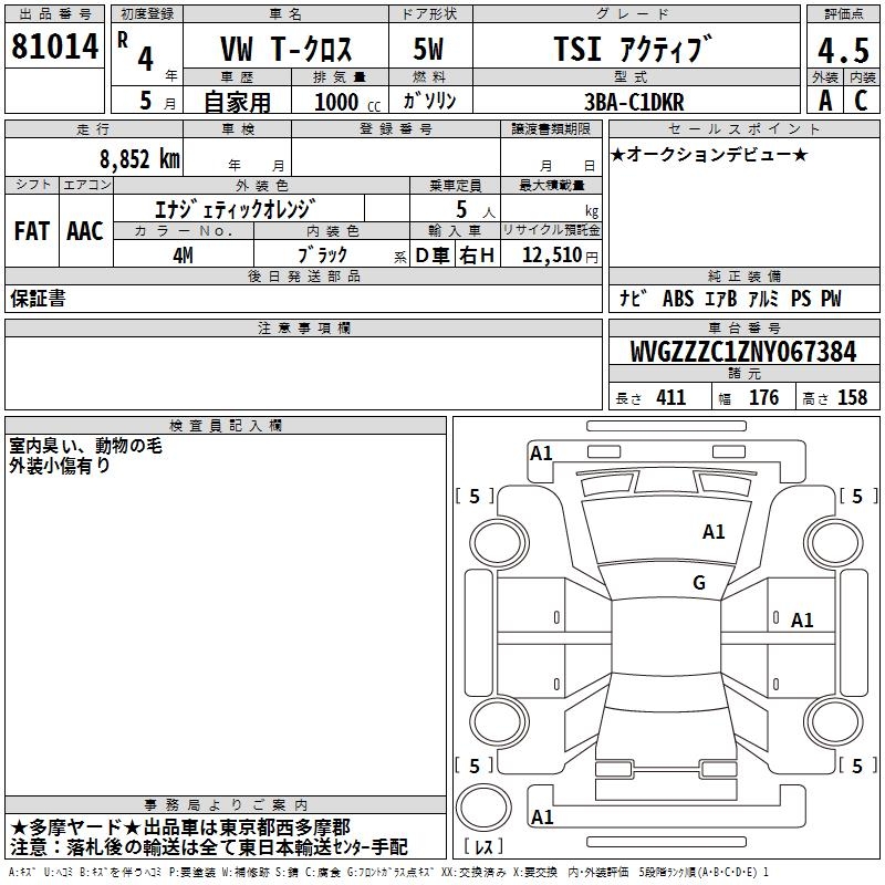 VOLKSWAGEN T-CROSS TSI ACTIVE - лот 81014