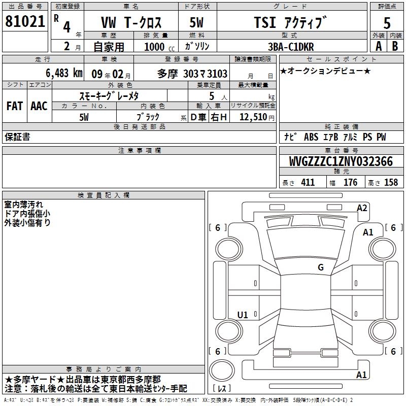 VOLKSWAGEN T-CROSS TSI ACTIVE - лот 81021