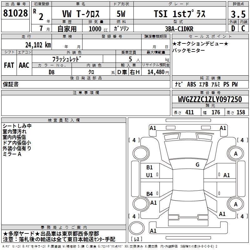VOLKSWAGEN T-CROSS TSI 1ST PLUS - лот 81028