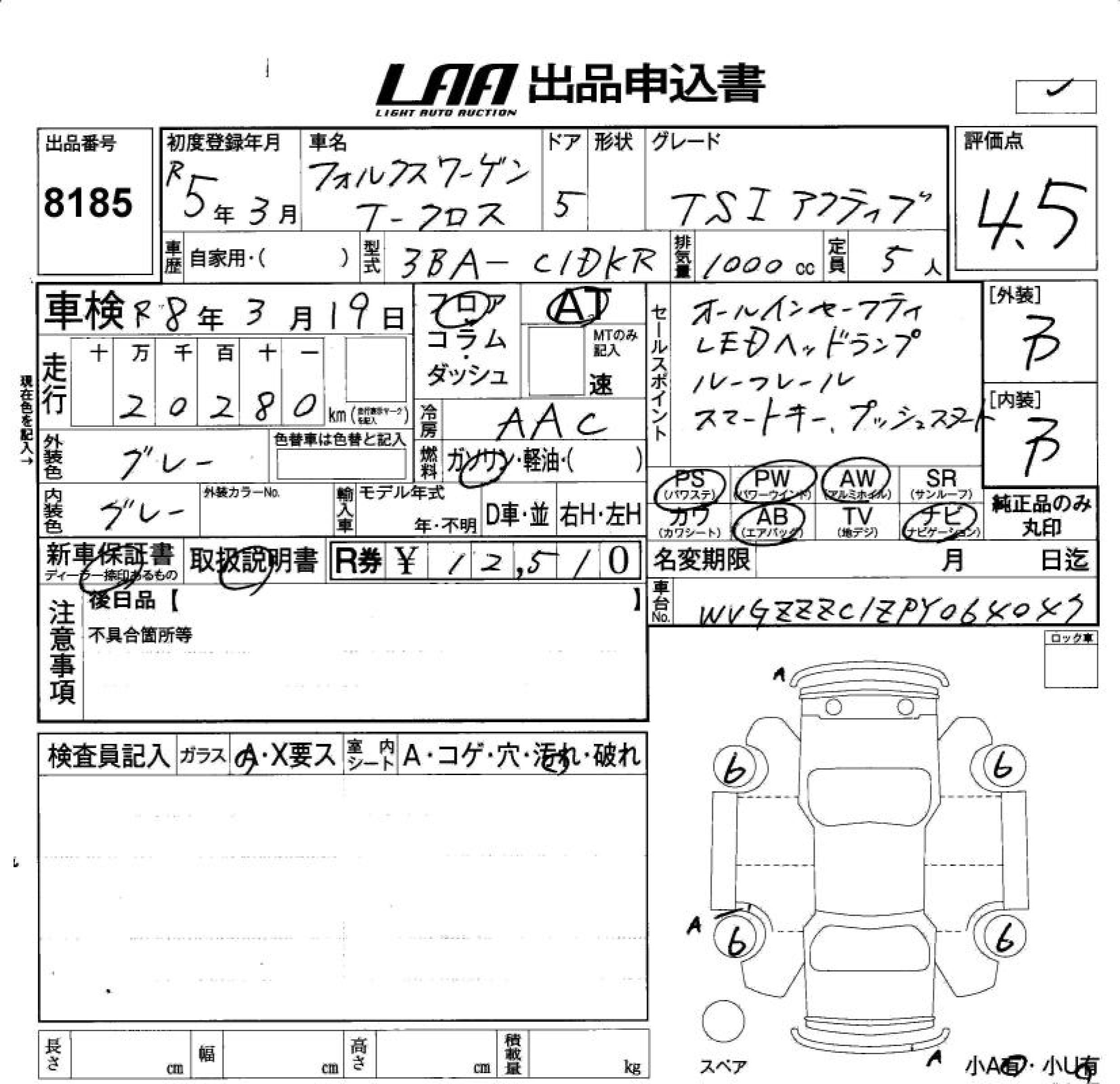 VOLKSWAGEN T-CROSS TSI ACTIVE - лот 8185