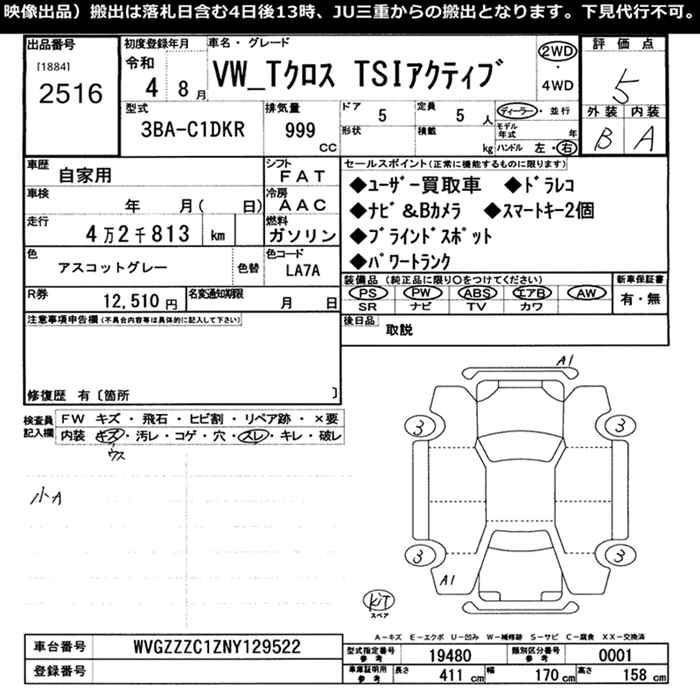 VOLKSWAGEN T-CROSS TSI ACTIVE - лот 2516