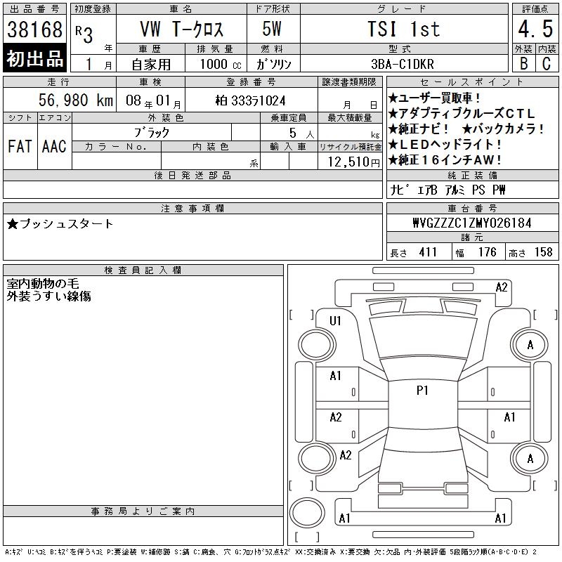 VOLKSWAGEN T-CROSS TSI 1st - лот 38168