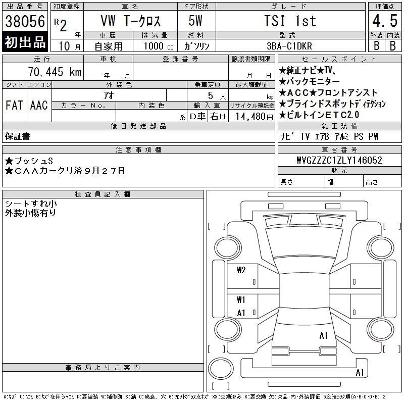 VOLKSWAGEN T-CROSS TSI 1st - лот 38056
