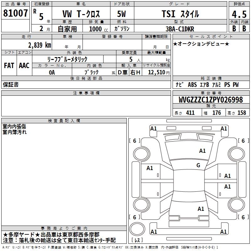 VOLKSWAGEN T-CROSS - лот 81007