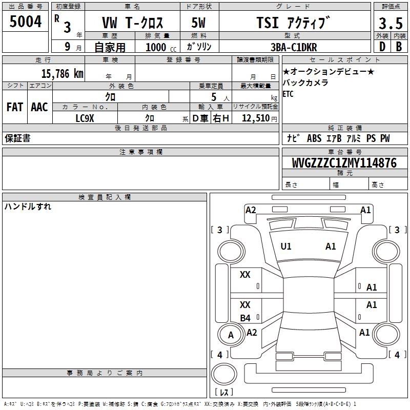 VOLKSWAGEN T-CROSS TSI действующий, действительный - лот 5004
