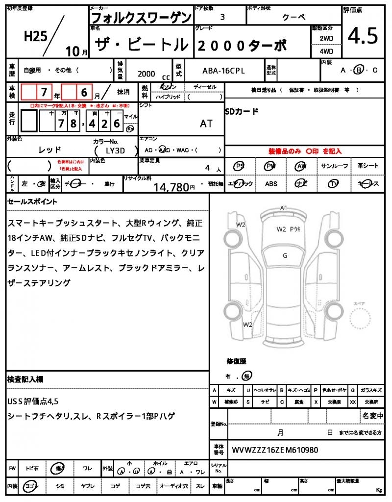 VOLKSWAGEN THE BEETLE - лот 46630