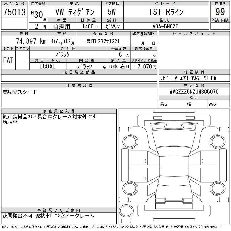 VOLKSWAGEN TIGUAN - лот 75013