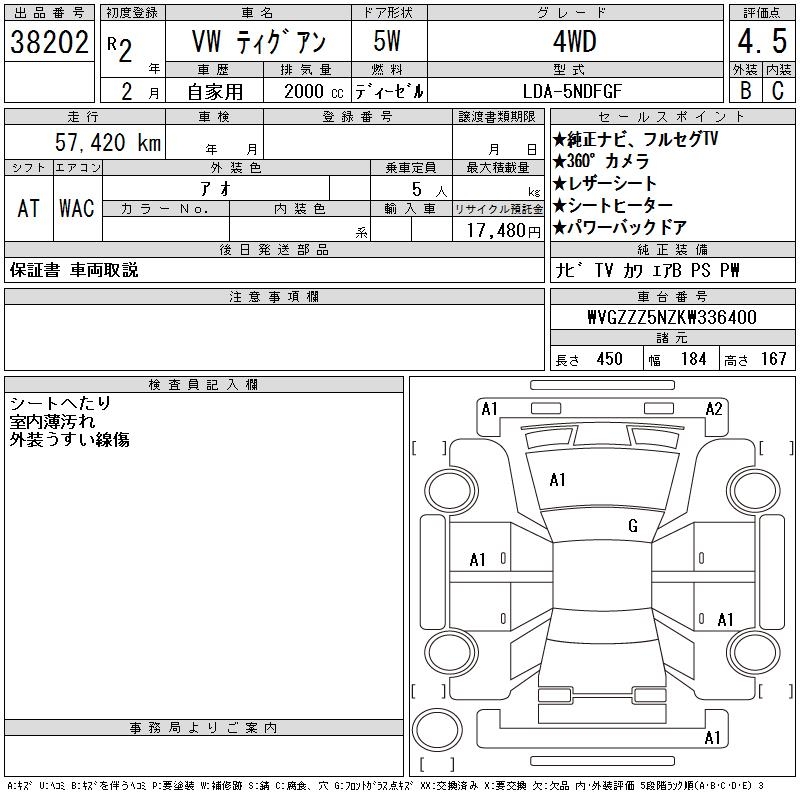 VOLKSWAGEN TIGUAN 4WD - лот 38202