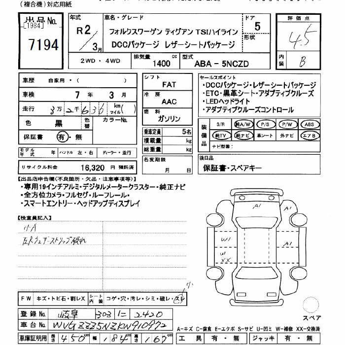 VOLKSWAGEN TIGUAN TIGUAN TSI HIGH LINE DCC PACKAGE LEATHER SI - лот 7194