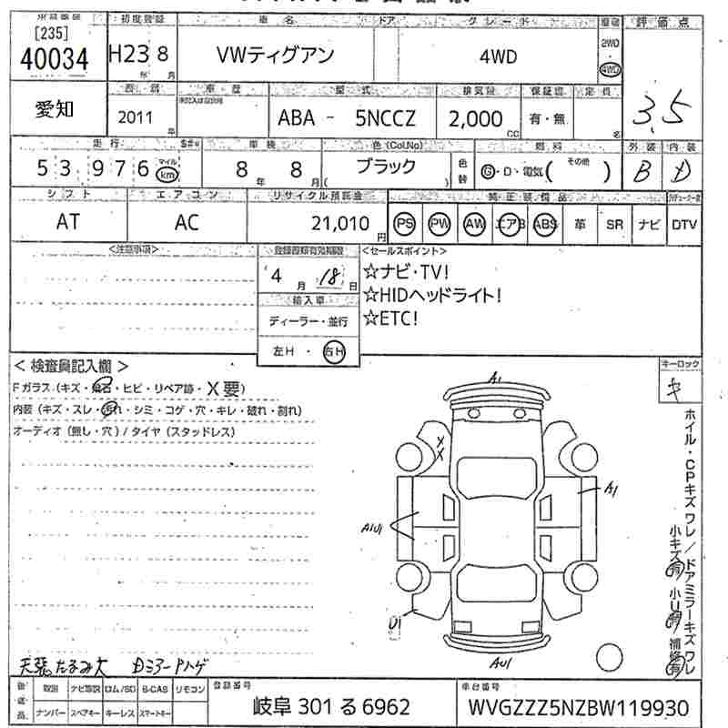 VOLKSWAGEN TIGUAN 4WD - лот 40034