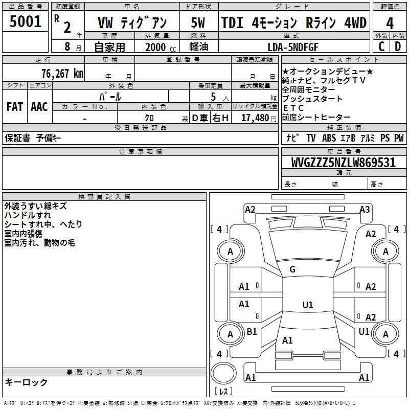 VOLKSWAGEN TIGUAN TDI 4 MOTION R LINE 4WD - лот 5001