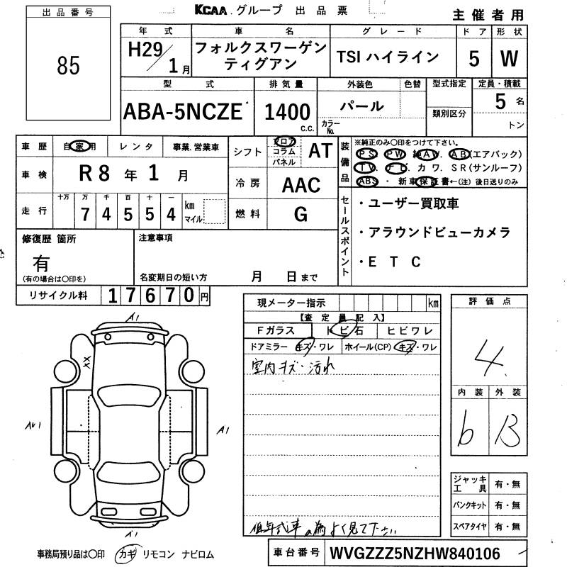 VOLKSWAGEN TIGUAN TSI HIGH LINE - лот 85