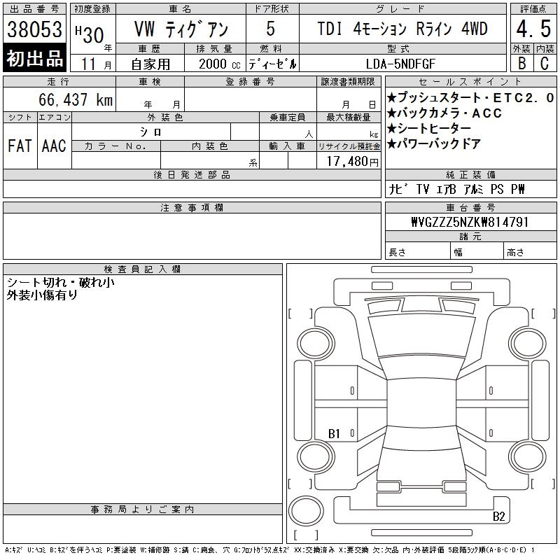 VOLKSWAGEN TIGUAN TDI 4 MOTION R LINE 4WD - лот 38053
