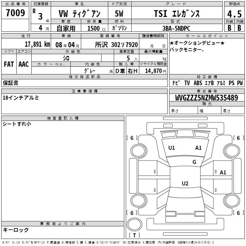 VOLKSWAGEN TIGUAN TSI ELEGANCE - лот 7009