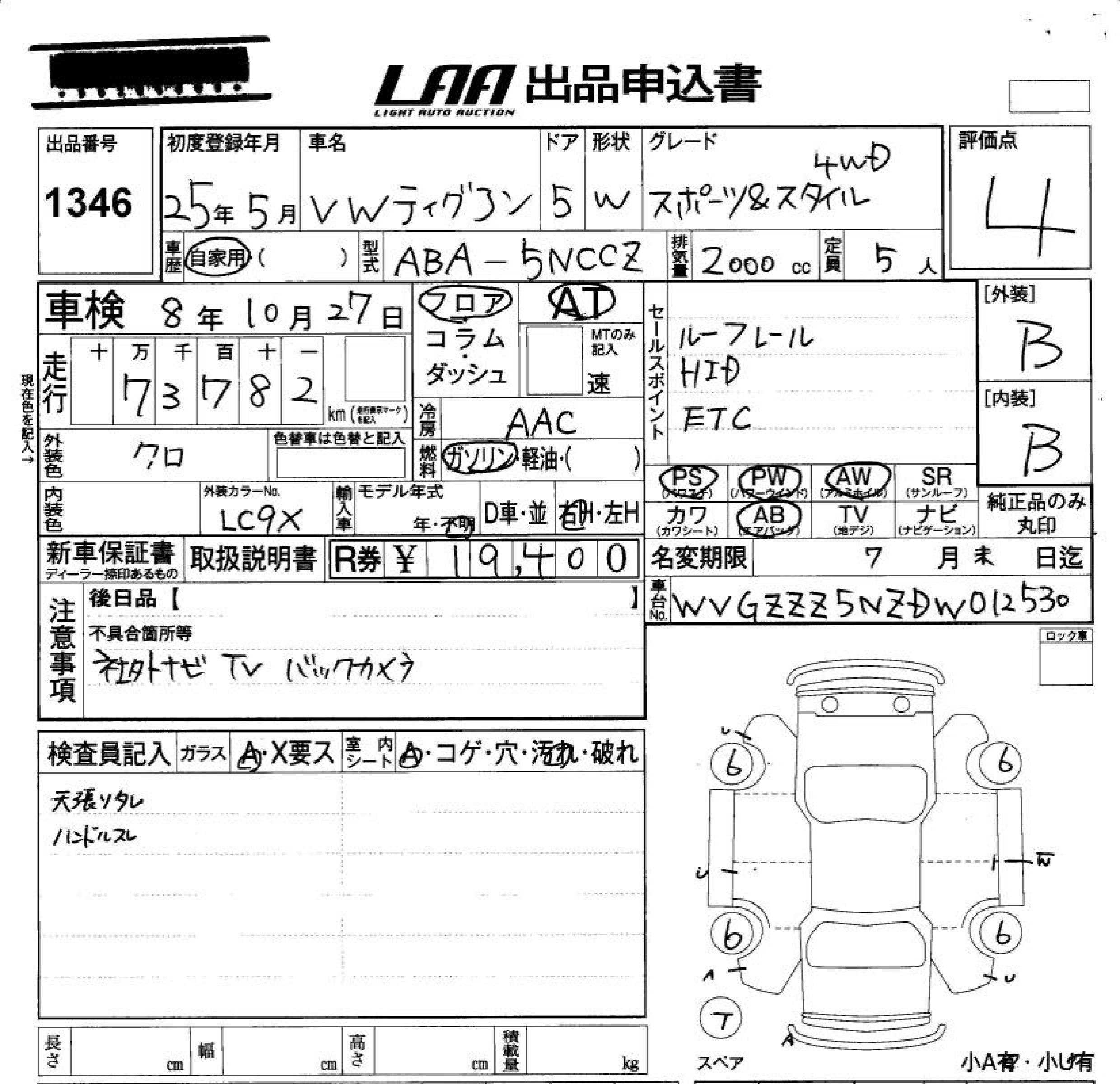 VOLKSWAGEN TIGUAN SPORT & STYLE 4WD - лот 1346