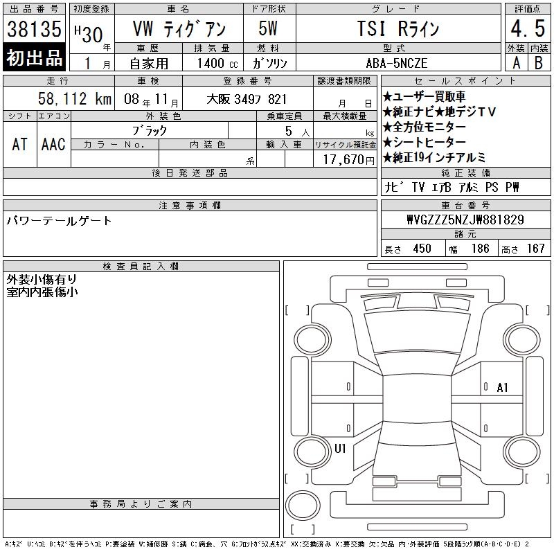 VOLKSWAGEN TIGUAN TSI R LINE - лот 38135