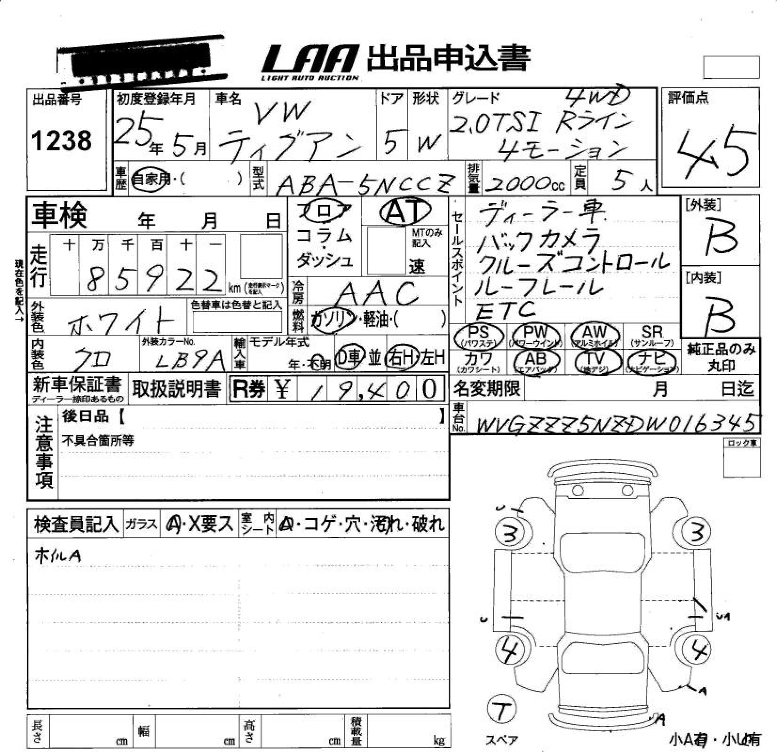 VOLKSWAGEN TIGUAN 2.0TSI R LINE 4MO- - лот 1238