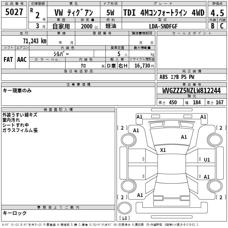 VOLKSWAGEN TIGUAN TDI 4M COMFORT LINE 4WD - лот 5027