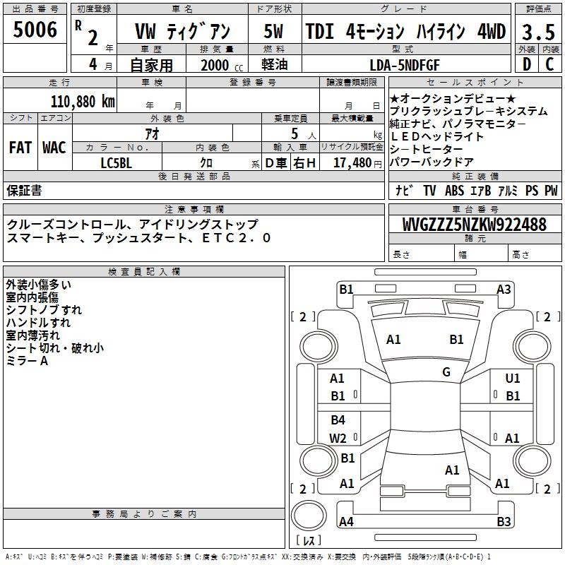 VOLKSWAGEN TIGUAN - лот 5006