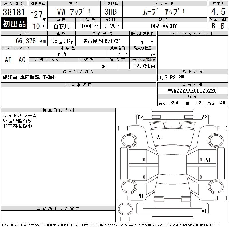 VOLKSWAGEN UP! - лот 38181