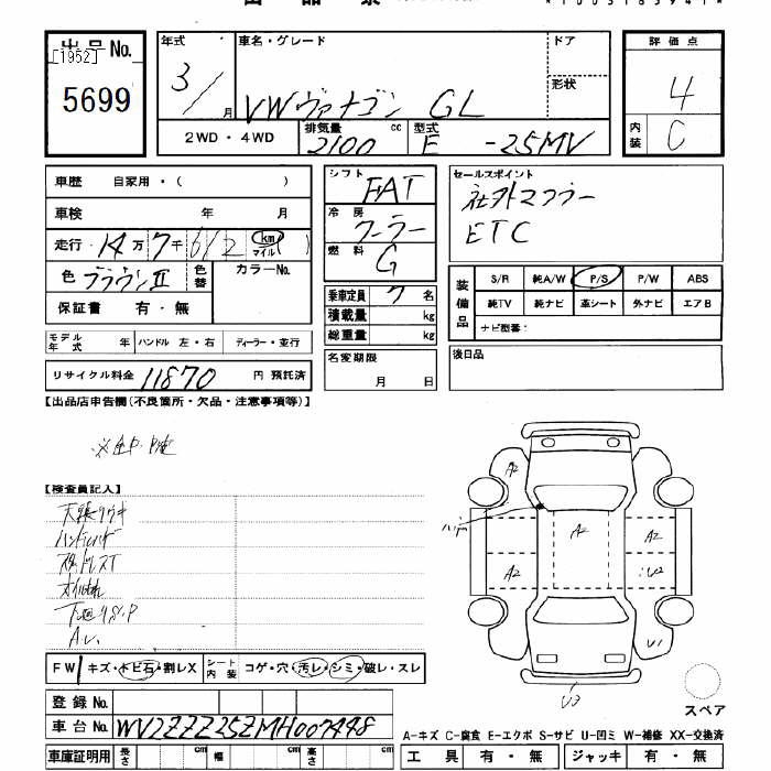 VOLKSWAGEN VANAGON - лот 5699