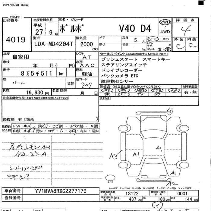 VOLVO V40 D4 - лот 4019
