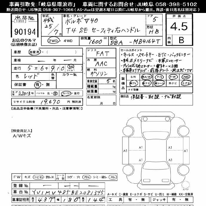 VOLVO V40 V40 T4SE safety - лот 90194
