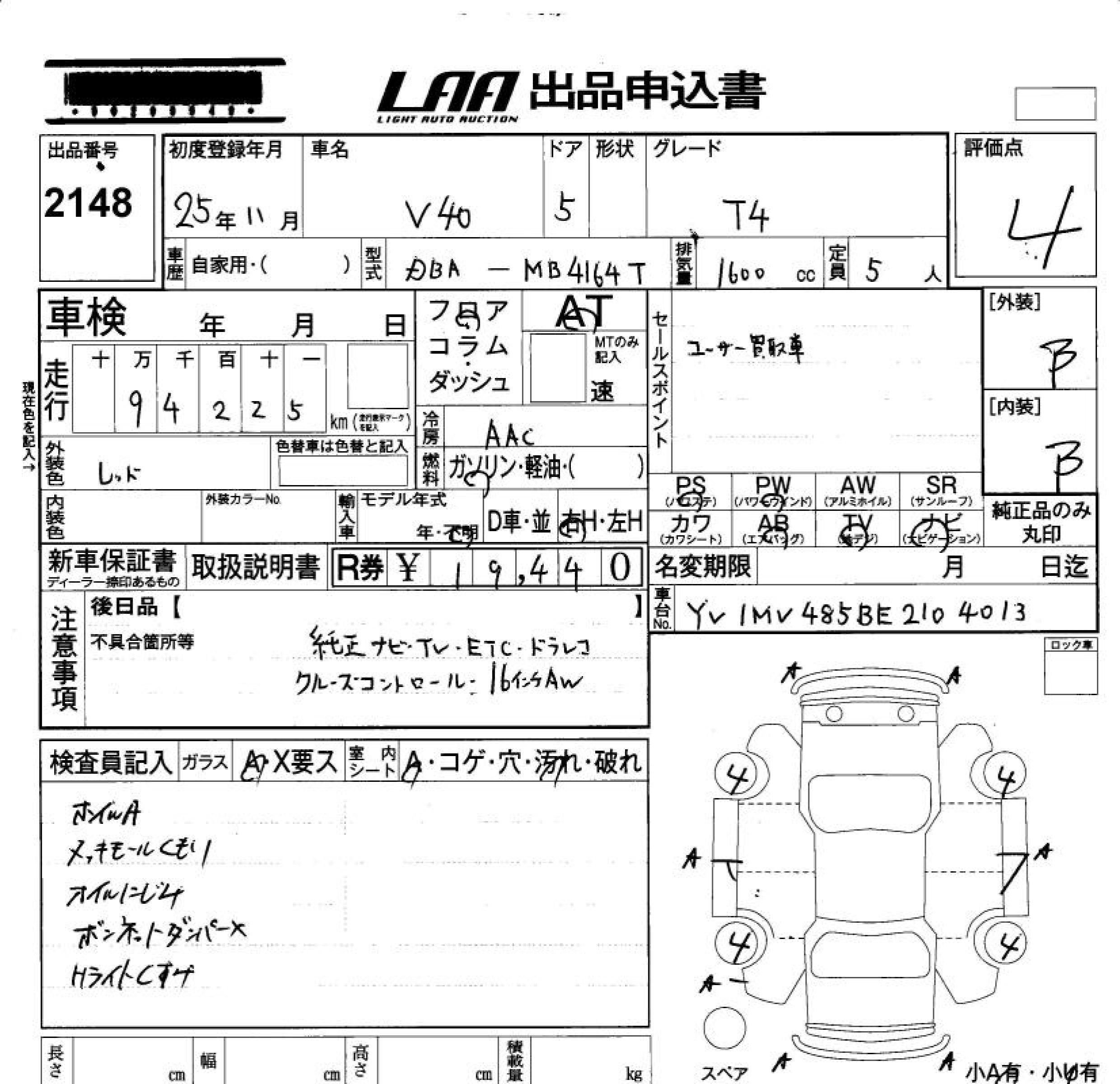 VOLVO V40 T4 - лот 2148
