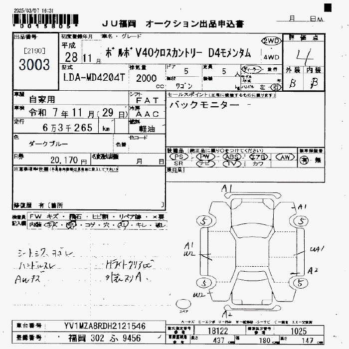 VOLVO V40 CROSS COUNTRY D4MO MEN MANY M - лот 3003