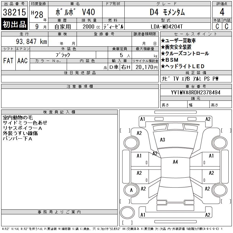 VOLVO V40 D4MO MEN MANY M - лот 38215