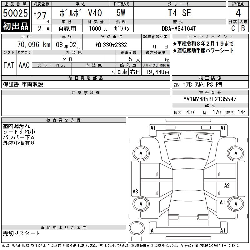 VOLVO V40 T4 SE - лот 50025
