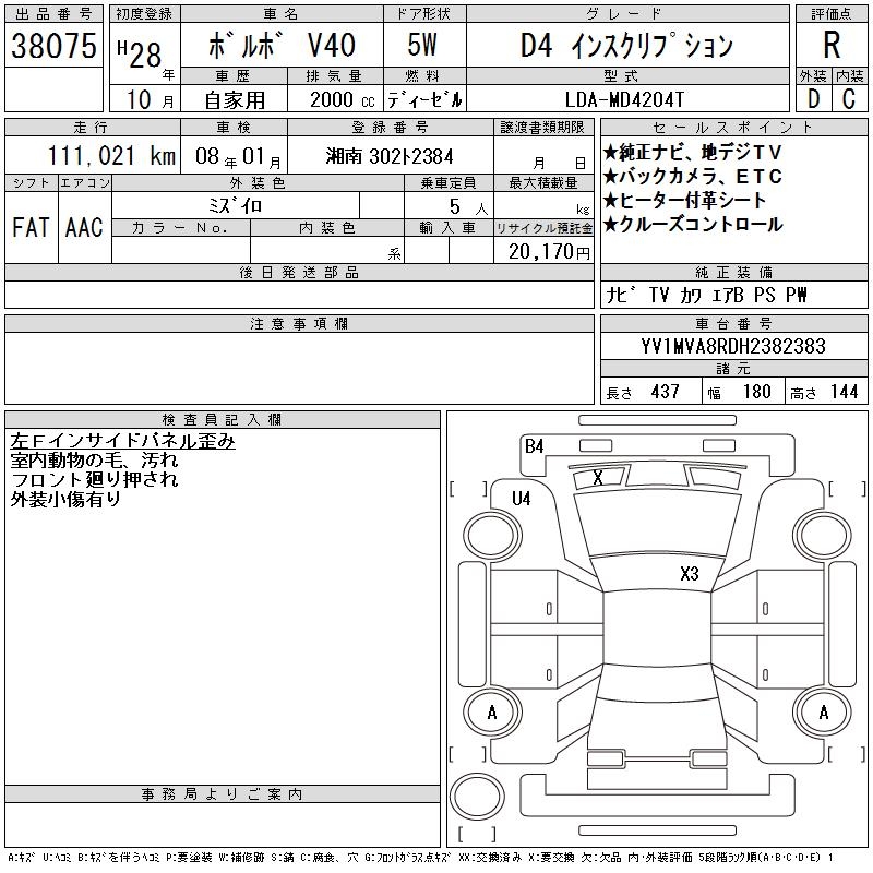 VOLVO V40 D4 INSCRIPTION - лот 38075