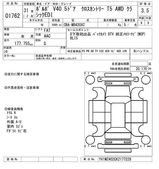 VOLVO V40 CROSS COUNTRY T5 AWD CLASSIC EDI - лот 1762