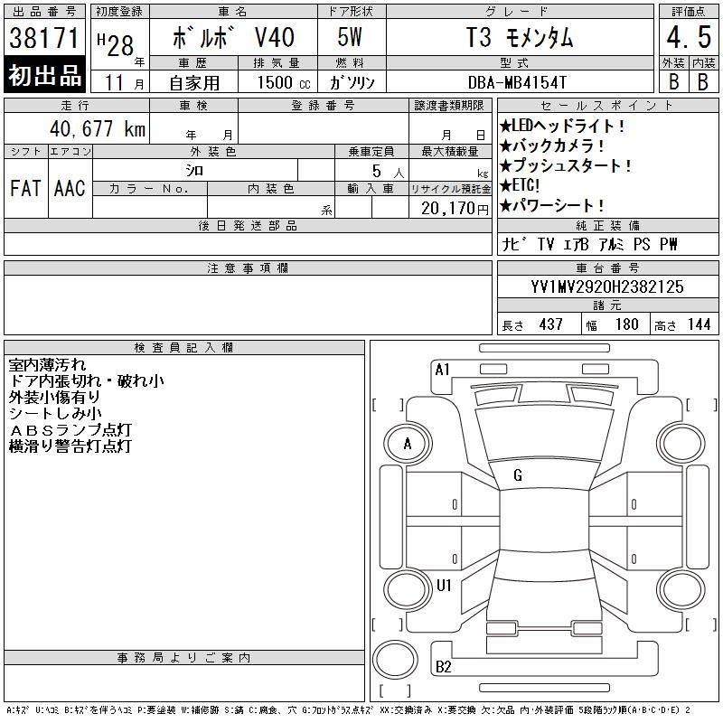 VOLVO V40 T3MO MEN MANY M - лот 38171