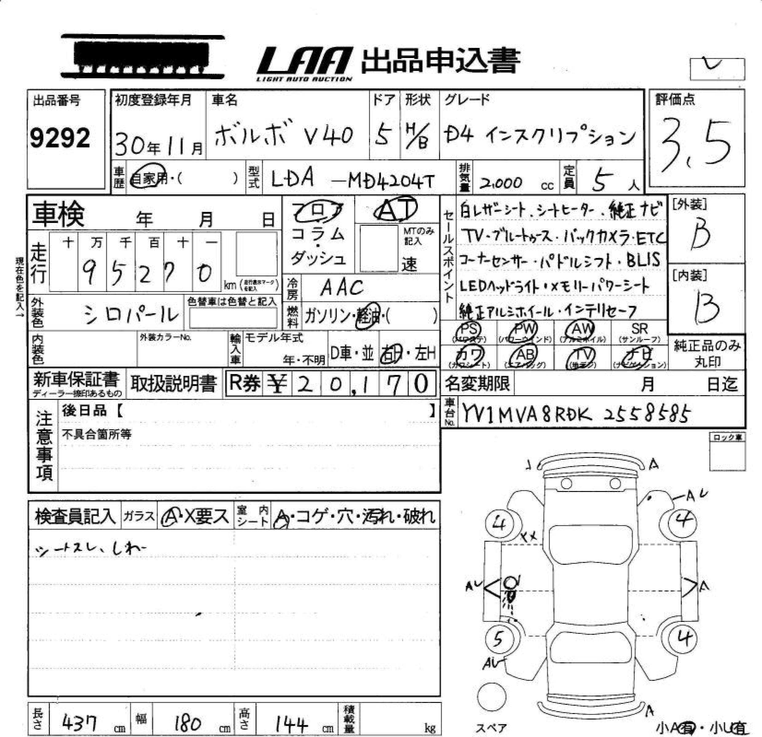 VOLVO V40 D4 INSCRIPTION - лот 9292