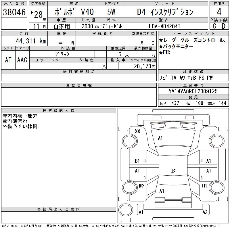 VOLVO V40 D4 INSCRIPTION - лот 38046