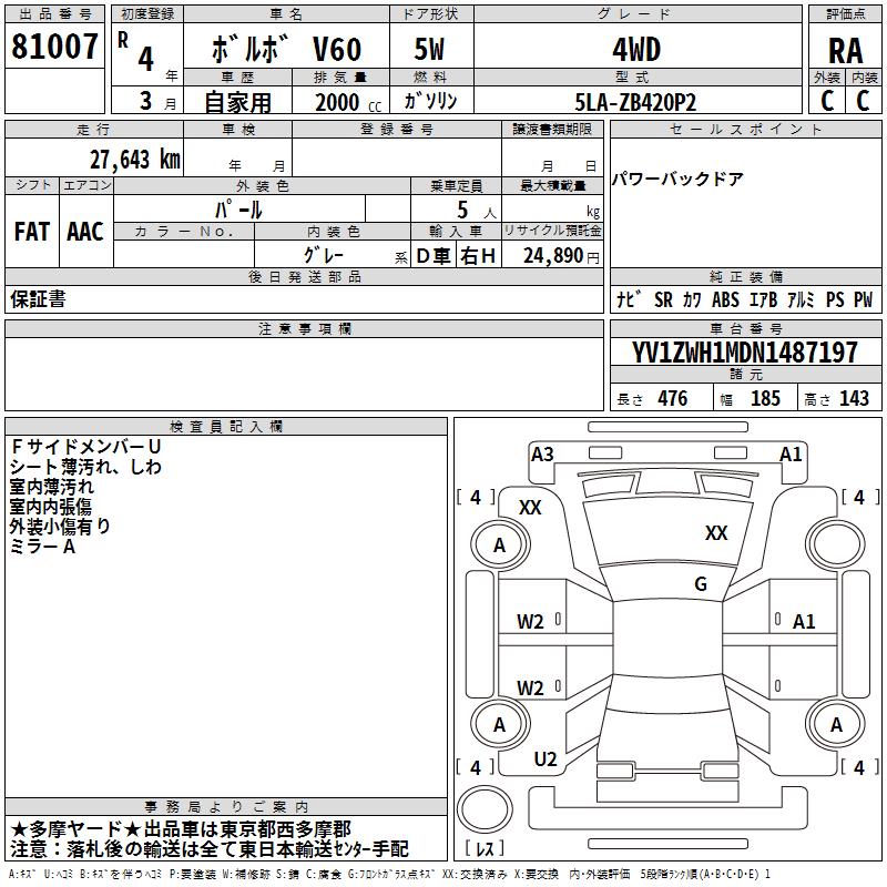 VOLVO V60 4WD - лот 81007