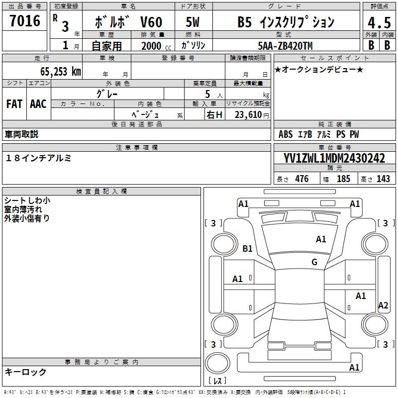 VOLVO V60 B5 INSCRIPTION - лот 7016