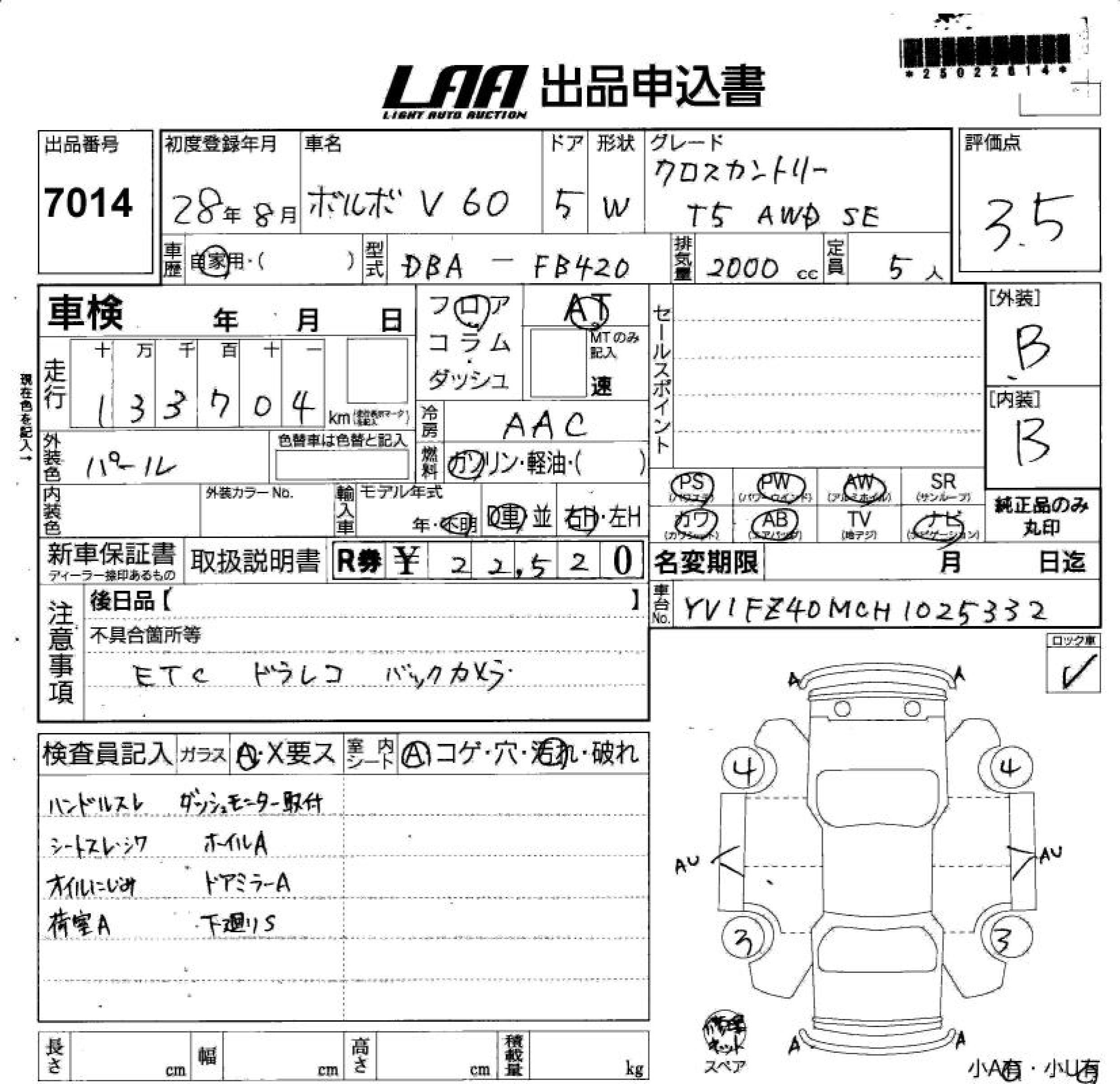 VOLVO V60 CROSS COUNTRY T5 AWD - лот 7014